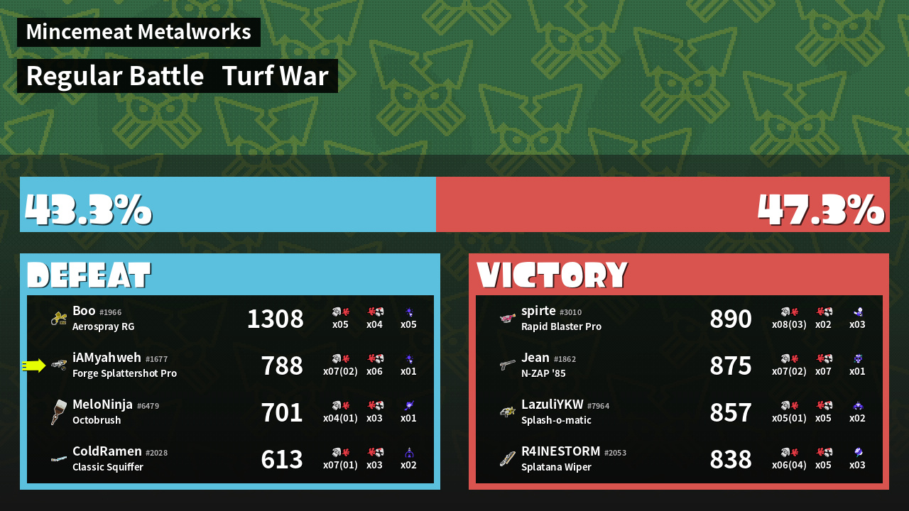 Kills / Deaths | 5 + 2 / 6 < Kill Ratio: 0.83 | ||