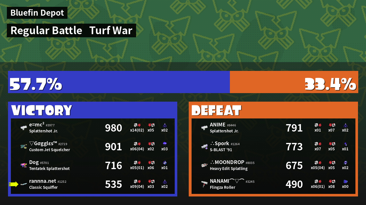 Kills / Deaths | 5 + 4 / 3 > Kill Ratio: 1.67 | ||