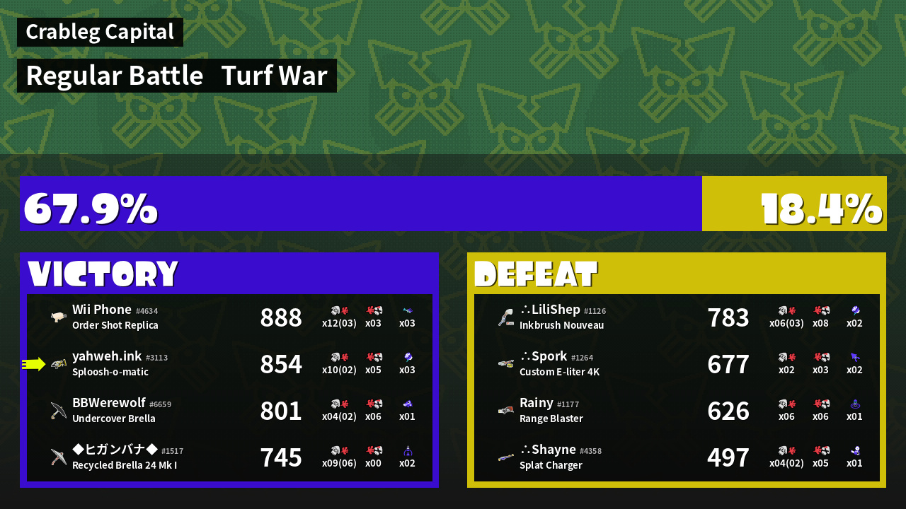 | Weapon | Sploosh-o-matic ( Curling Bomb / Ultra Stamp) | ||