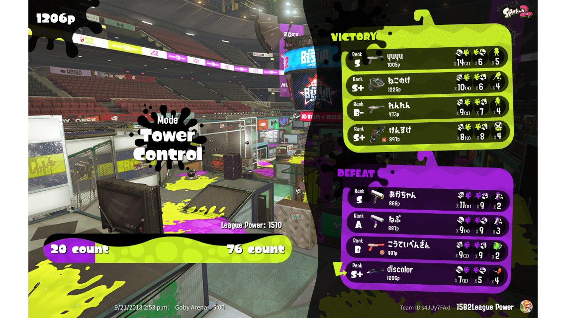 | Mode | Tower Control - League Battle (Twin) | ||||||||||||||||||||||||||||||||||