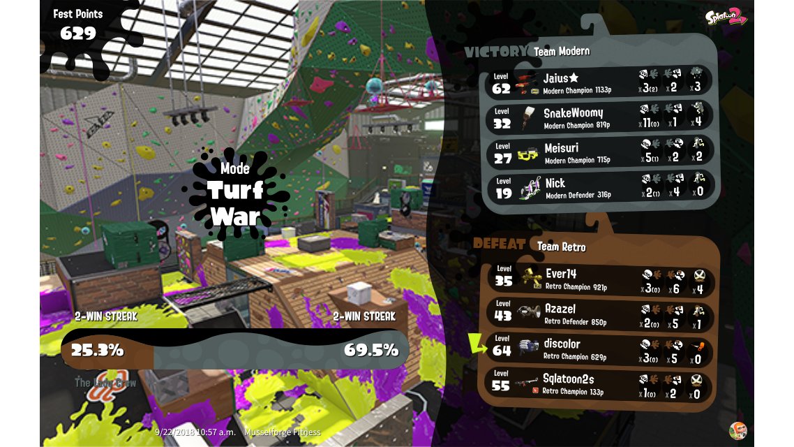 | Mode | Turf War - Splatfest (Team) | |||||||||||||||||||||||||||||||||||||