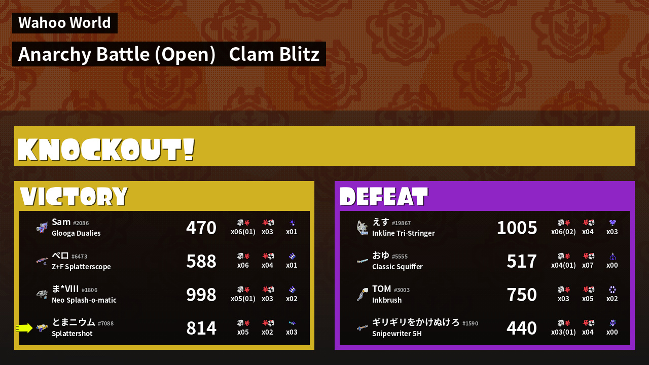 | Mode | Clam Blitz - Anarchy Battle (Open) | ||