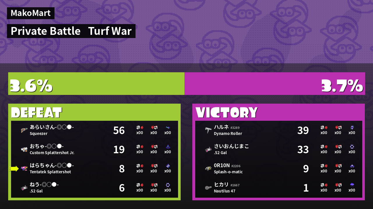 | Weapon | Tentatek Splattershot ( Splat Bomb / Triple Inkstrike) | ||