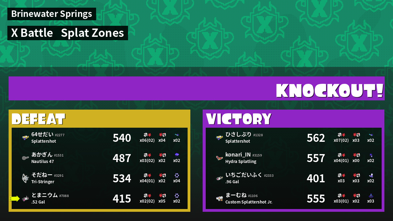 | Medals | #1 Splat Assister #1 Splat Zone Hero #1 Killer Wail 5.1 User | ||
