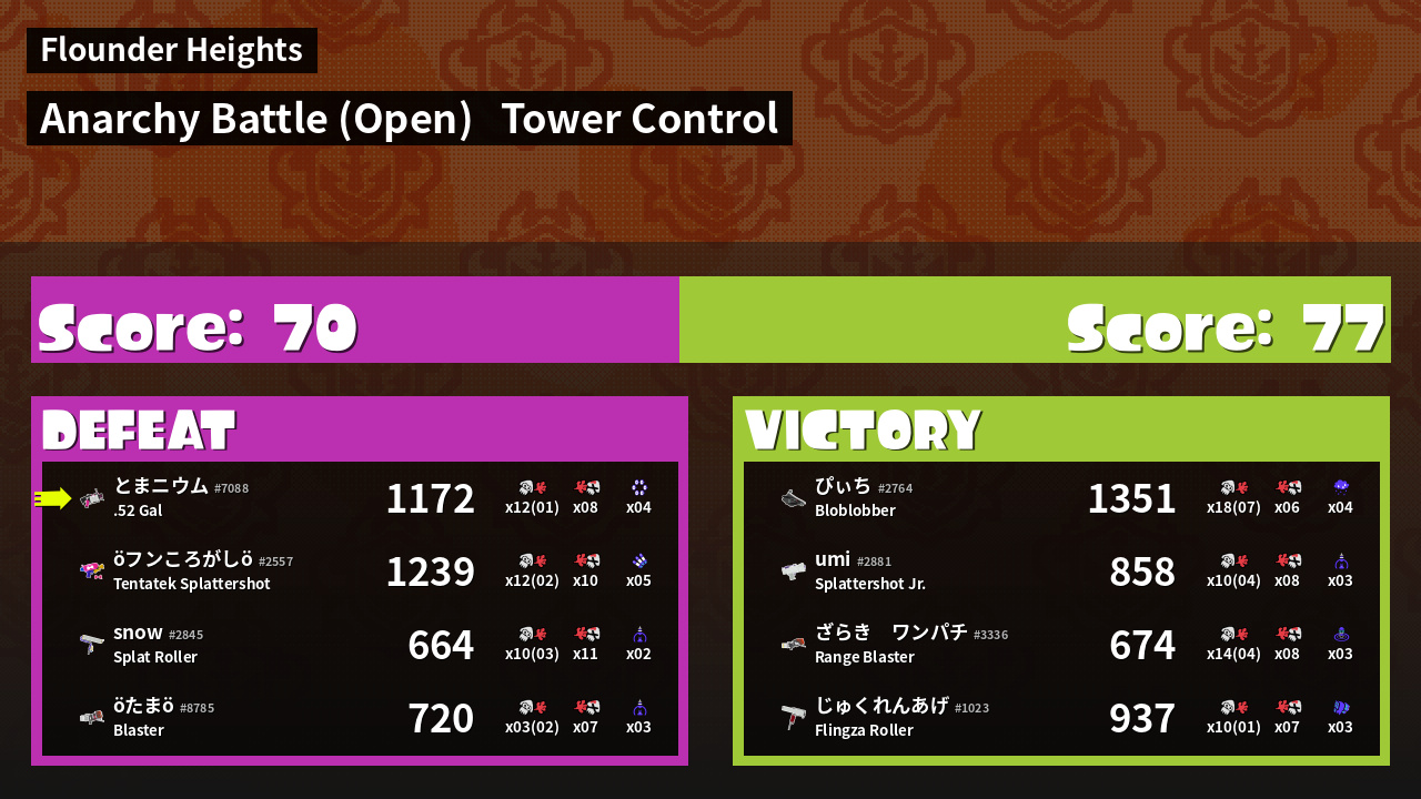| Mode | Tower Control - Anarchy Battle (Open) | ||