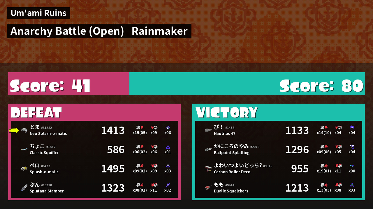 | Mode | Rainmaker - Anarchy Battle (Open) | ||