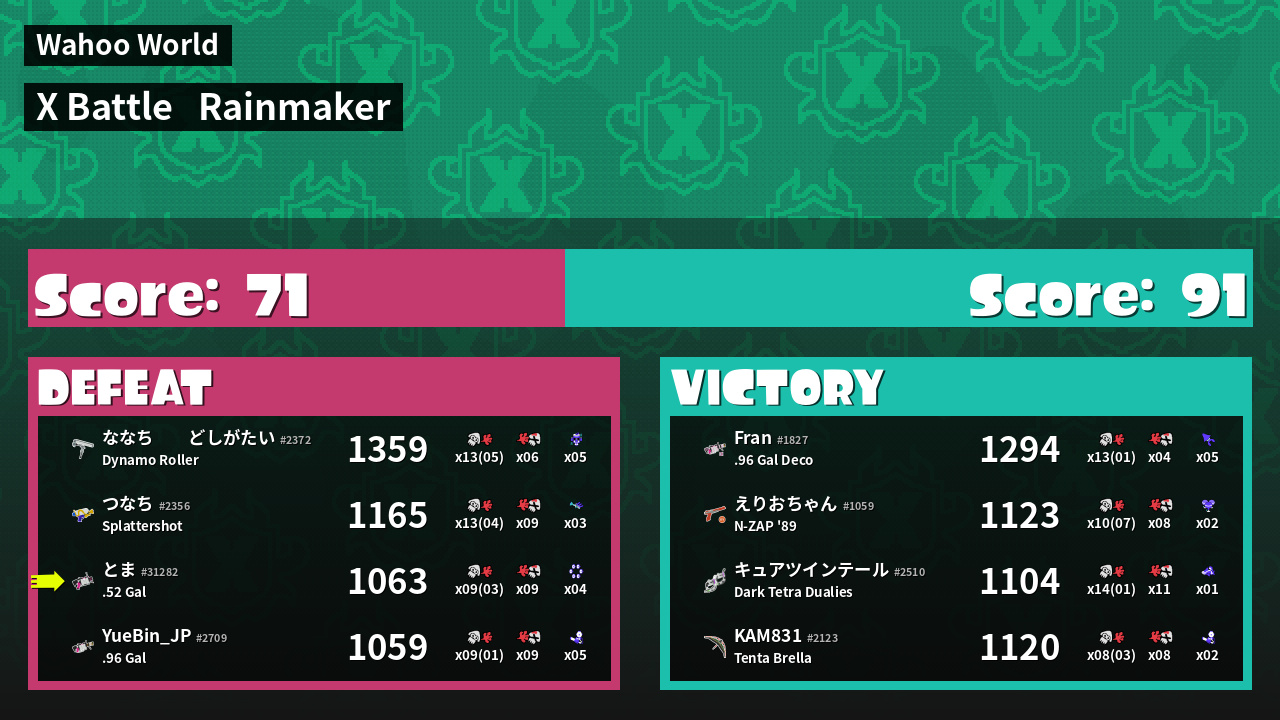 | Mode | Rainmaker - X Battle | ||