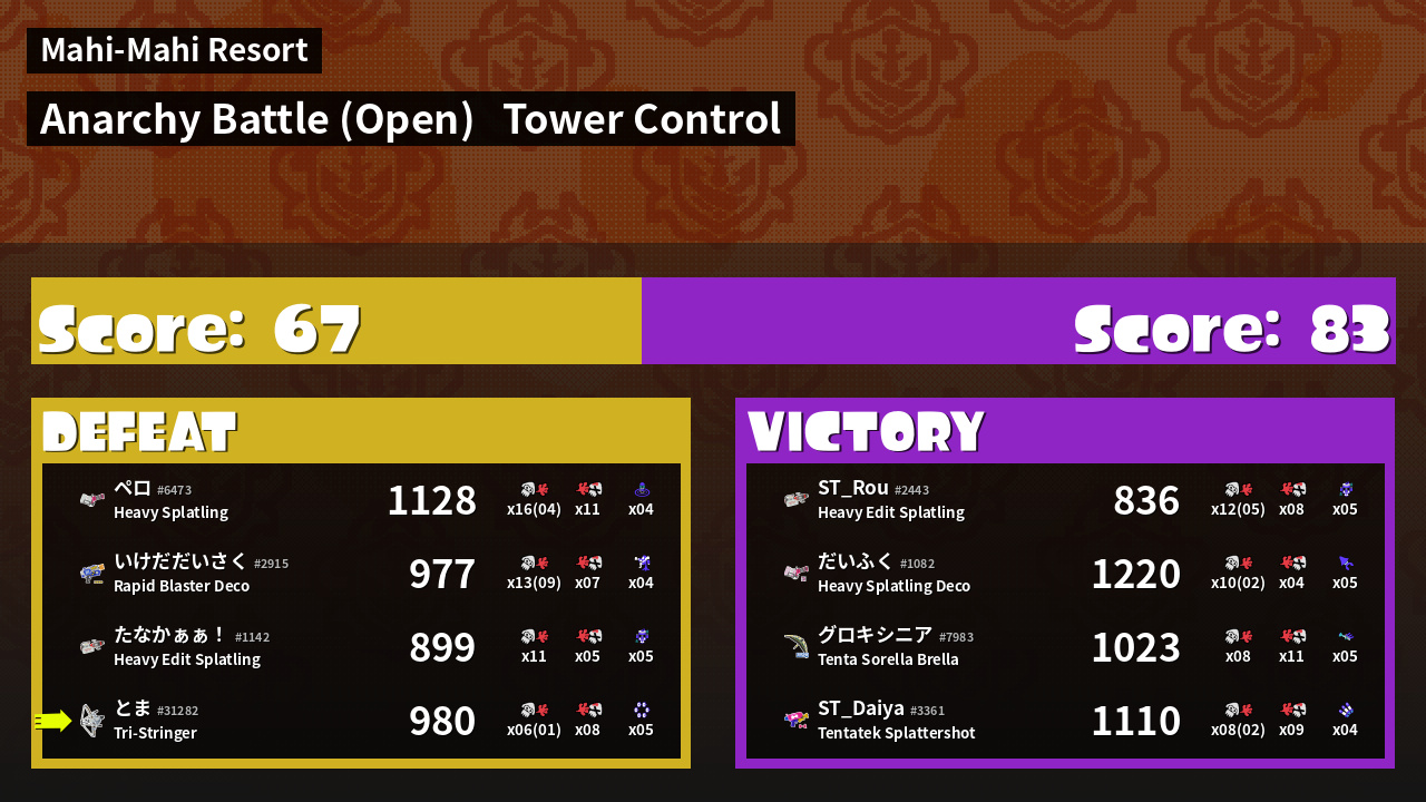 | Mode | Tower Control - Anarchy Battle (Open) | ||