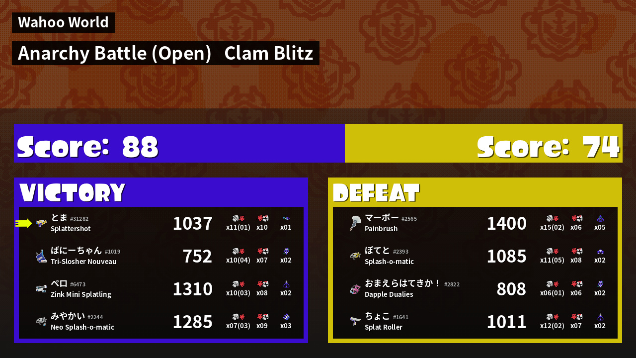 | Mode | Clam Blitz - Anarchy Battle (Open) | ||