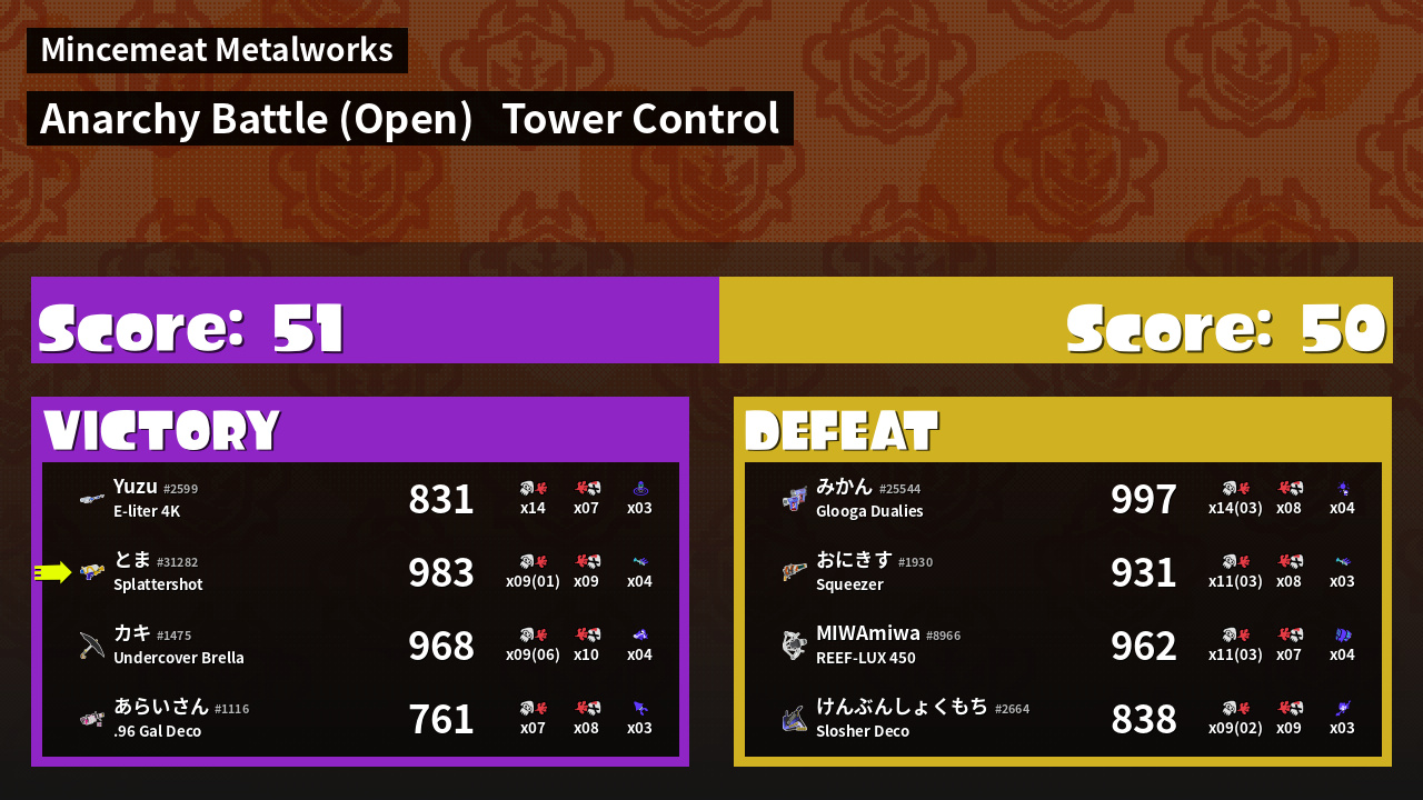 | Mode | Tower Control - Anarchy Battle (Open) | ||