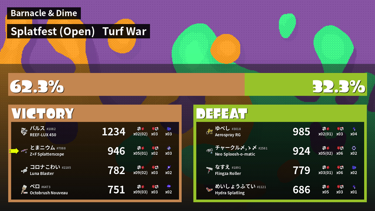 | Medals | #1 Enemy-Base Inker #1 Triple Inkstrike User #2 Turf Inker | ||
