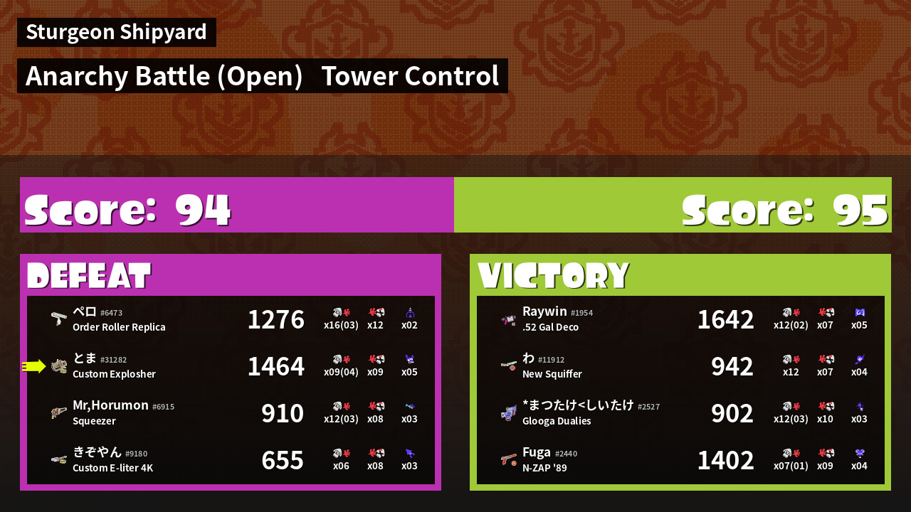 | Mode | Tower Control - Anarchy Battle (Open) | ||