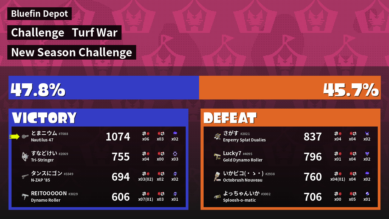 | Mode | Turf War - Challenge | ||