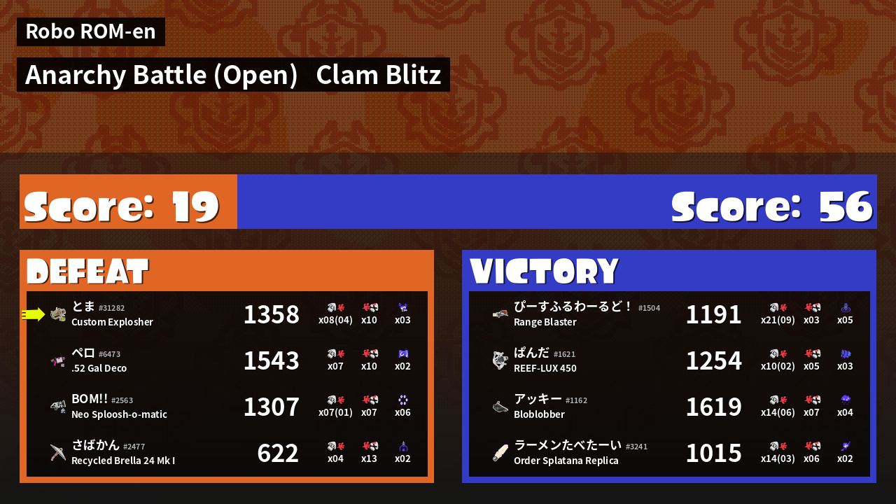 | Mode |  Clam Blitz -  Anarchy Battle (Open) | ||