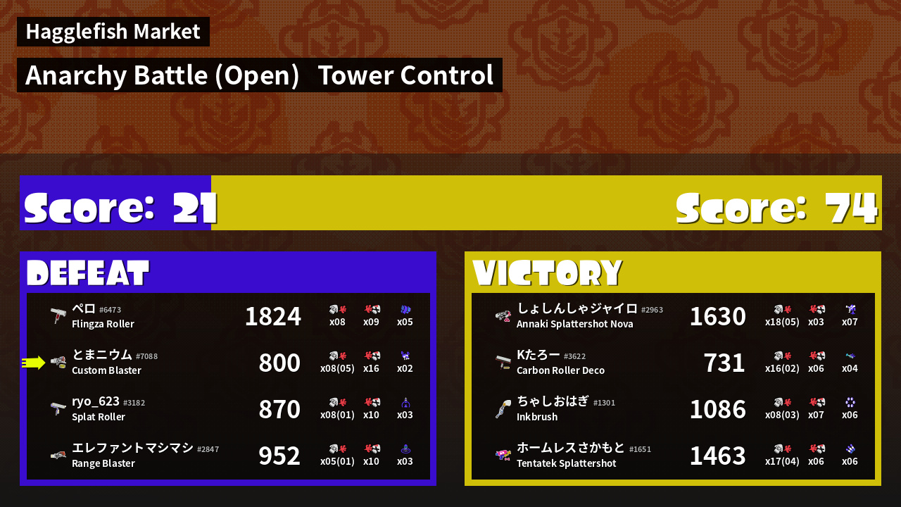 | Mode | Tower Control - Anarchy Battle (Open) | ||