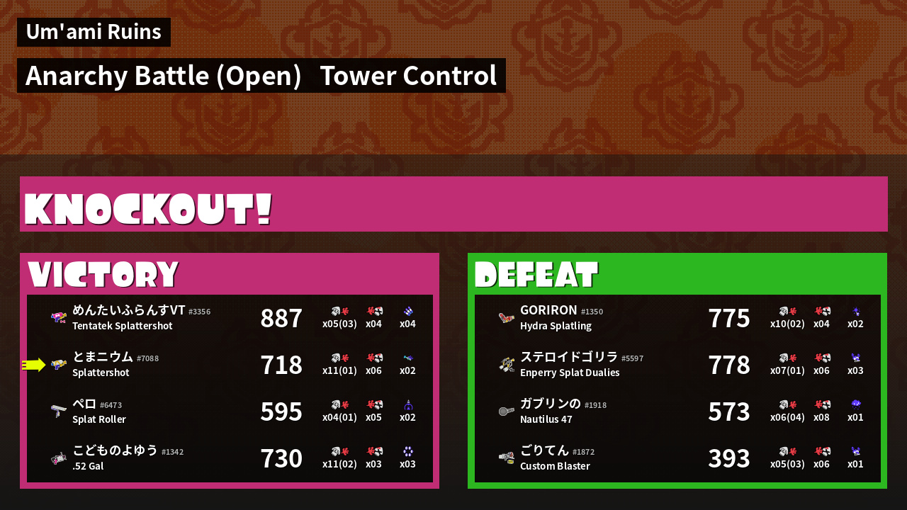 Kills / Deaths | 10 + 1 / 6 > Kill Ratio: 1.67 | ||