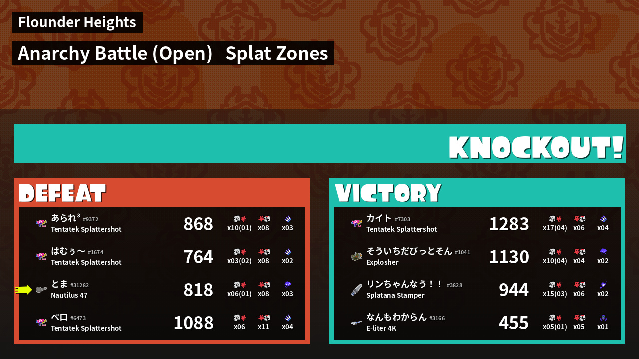 | Mode | Splat Zones - Anarchy Battle (Open) | ||