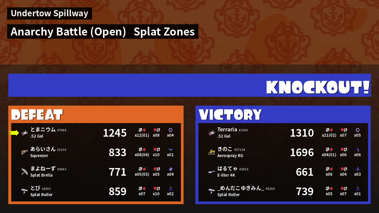 | Mode | Splat Zones - Anarchy Battle (Open) | ||