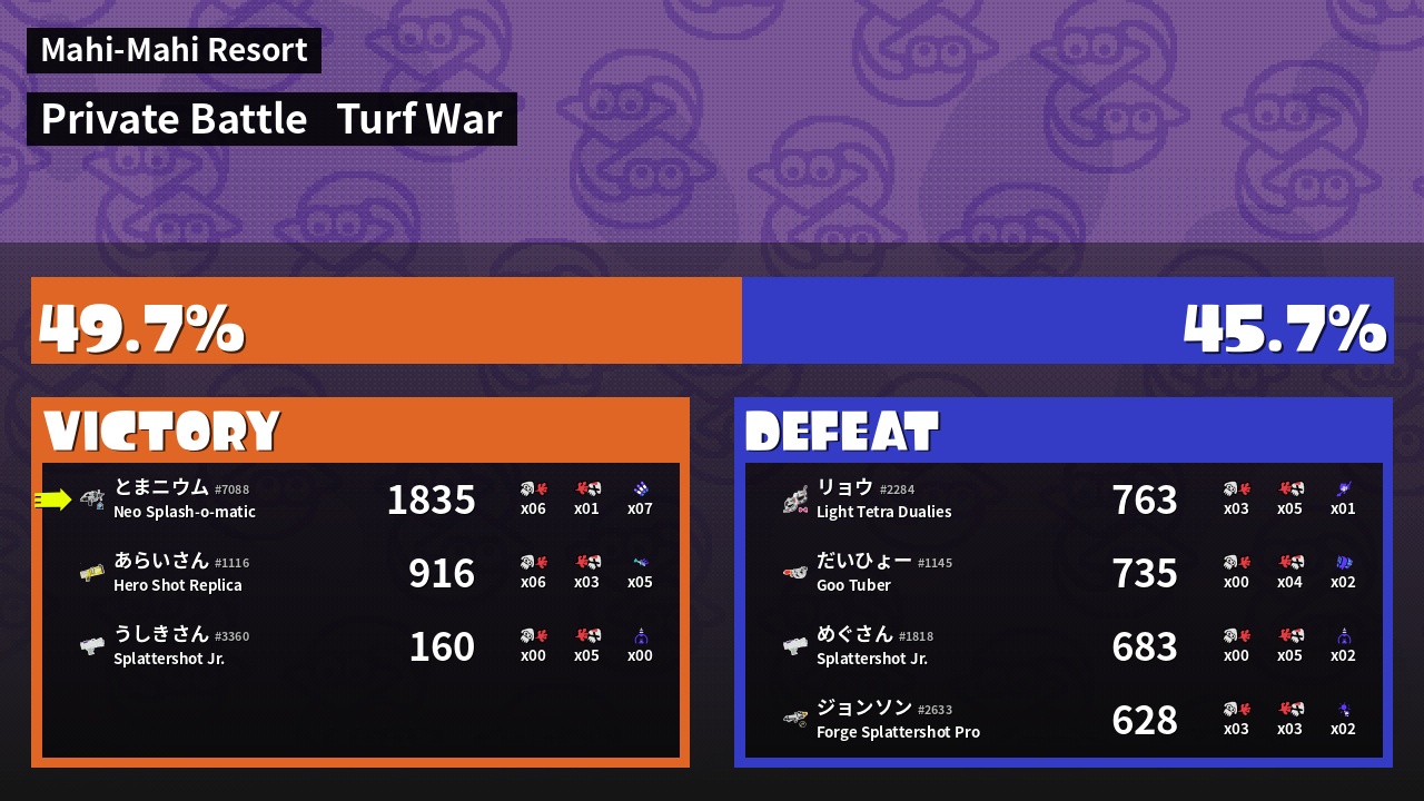 | Mode | Turf War - Private Battle | ||