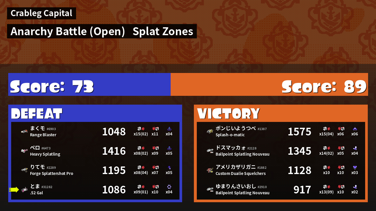 | Mode | Splat Zones - Anarchy Battle (Open) | ||