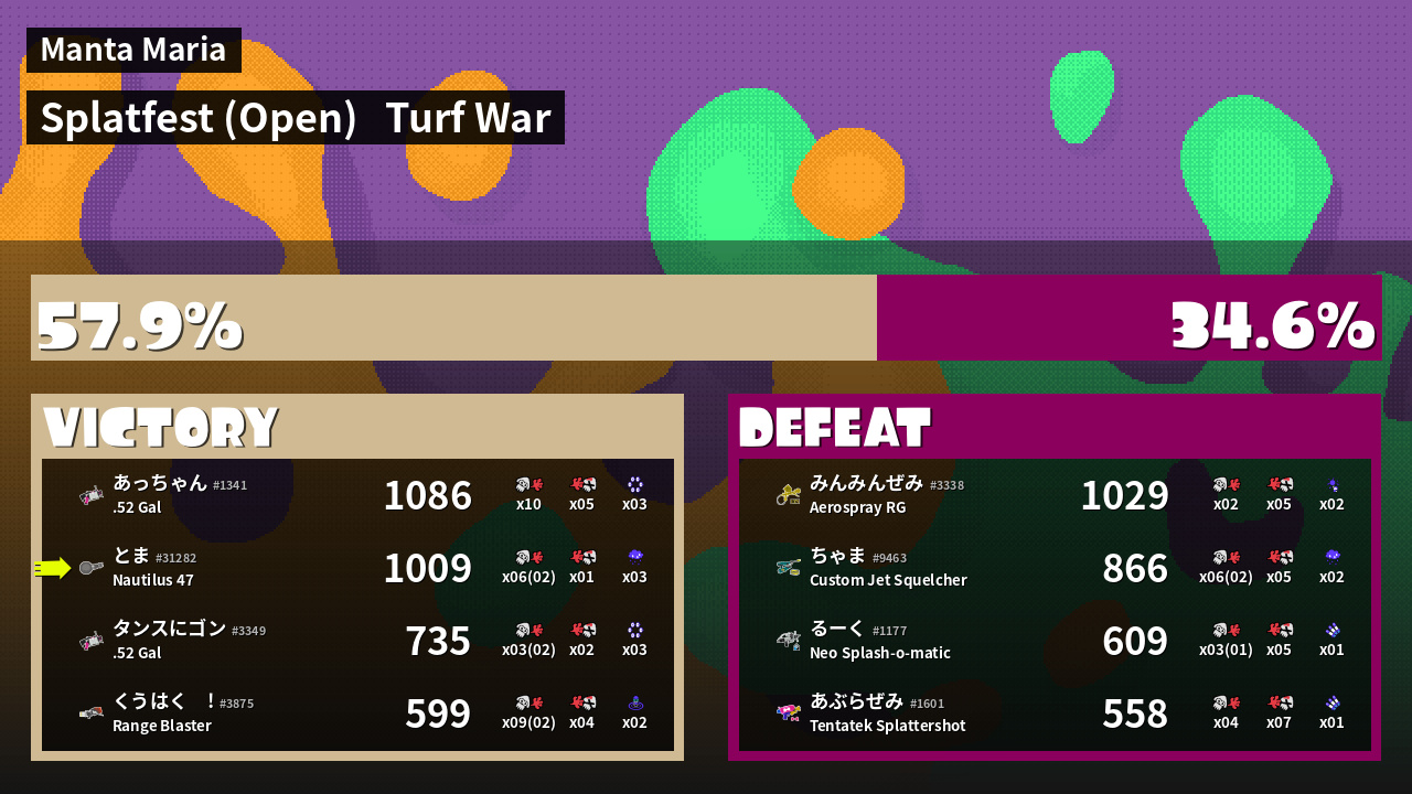 | Medals | #1 Home-Base Inker #1 Splat Assister #1 Ink Storm User | ||