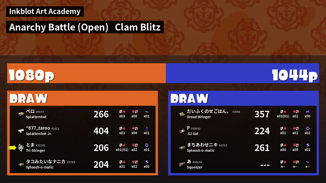 | Mode | Clam Blitz - Anarchy Battle (Open) | ||