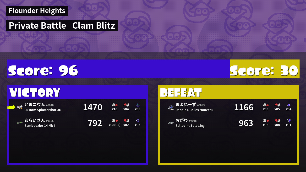 | Mode | Clam Blitz - Private Battle | ||