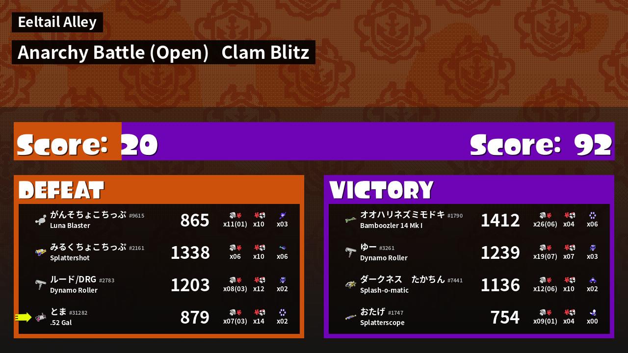 | Mode | Clam Blitz - Anarchy Battle (Open) | ||