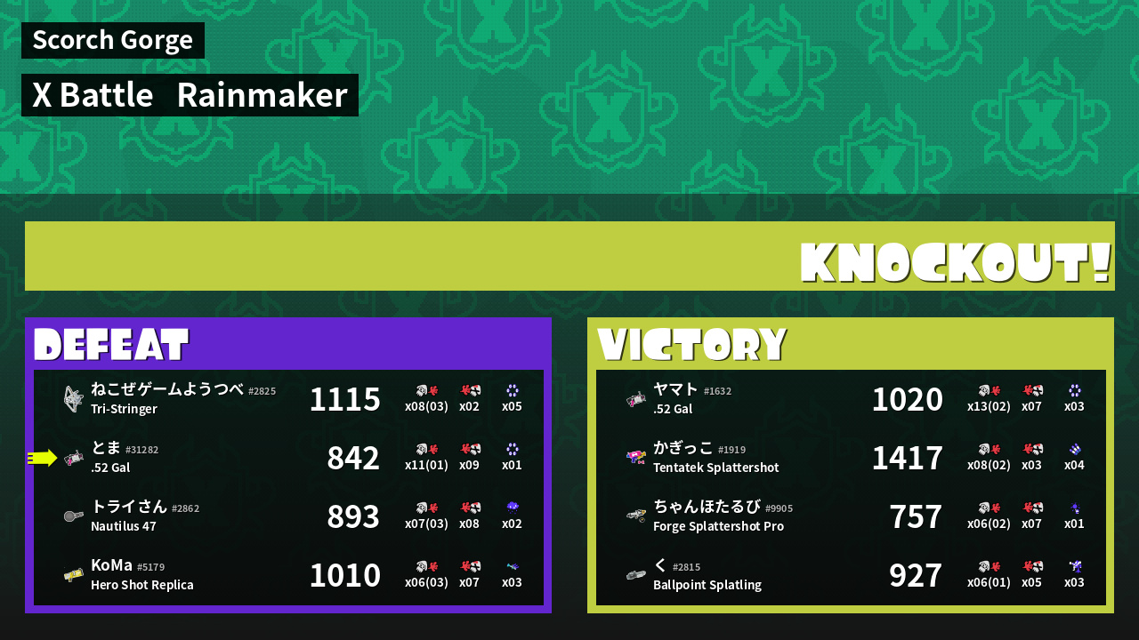 | Medals | #1 Overall Splatter #1 Enemy Splatter #1 Rainmaker Carrier | ||