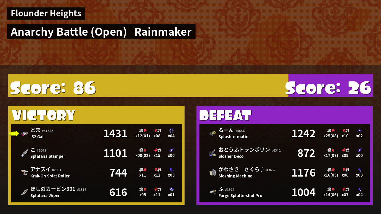 | Mode | Rainmaker - Anarchy Battle (Open) | ||