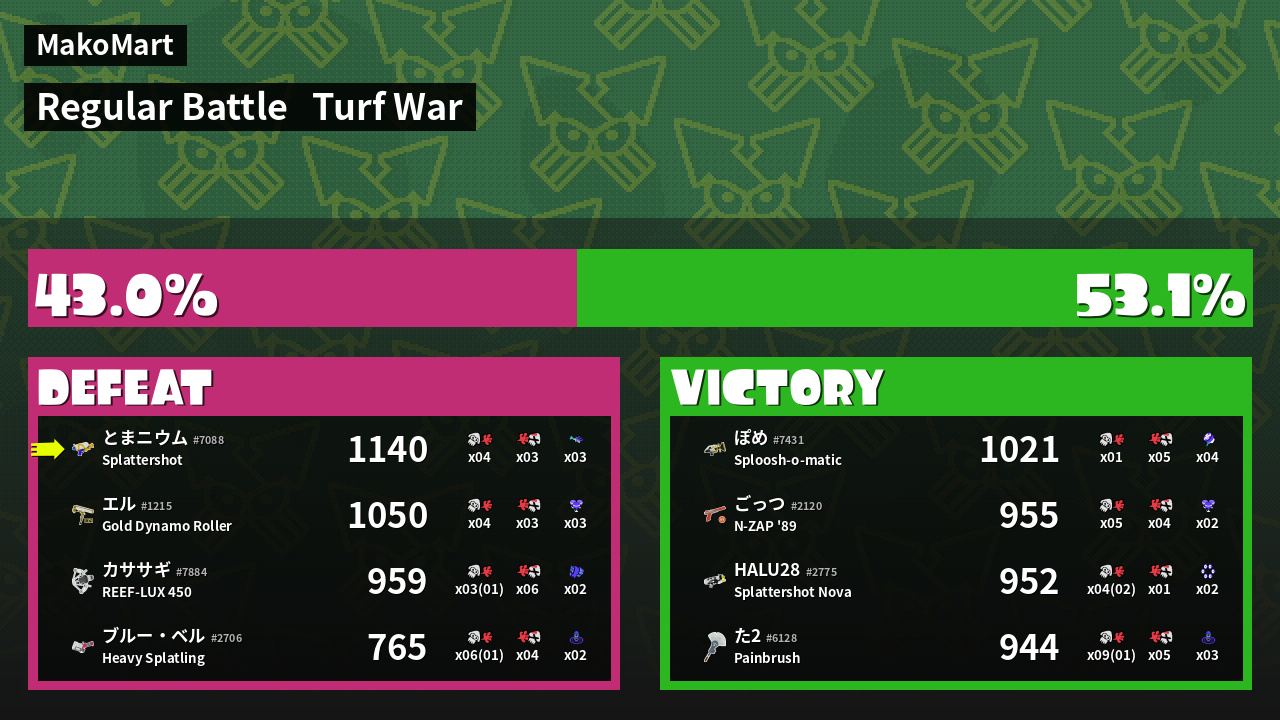 | Mode | Turf War - Regular Battle | ||