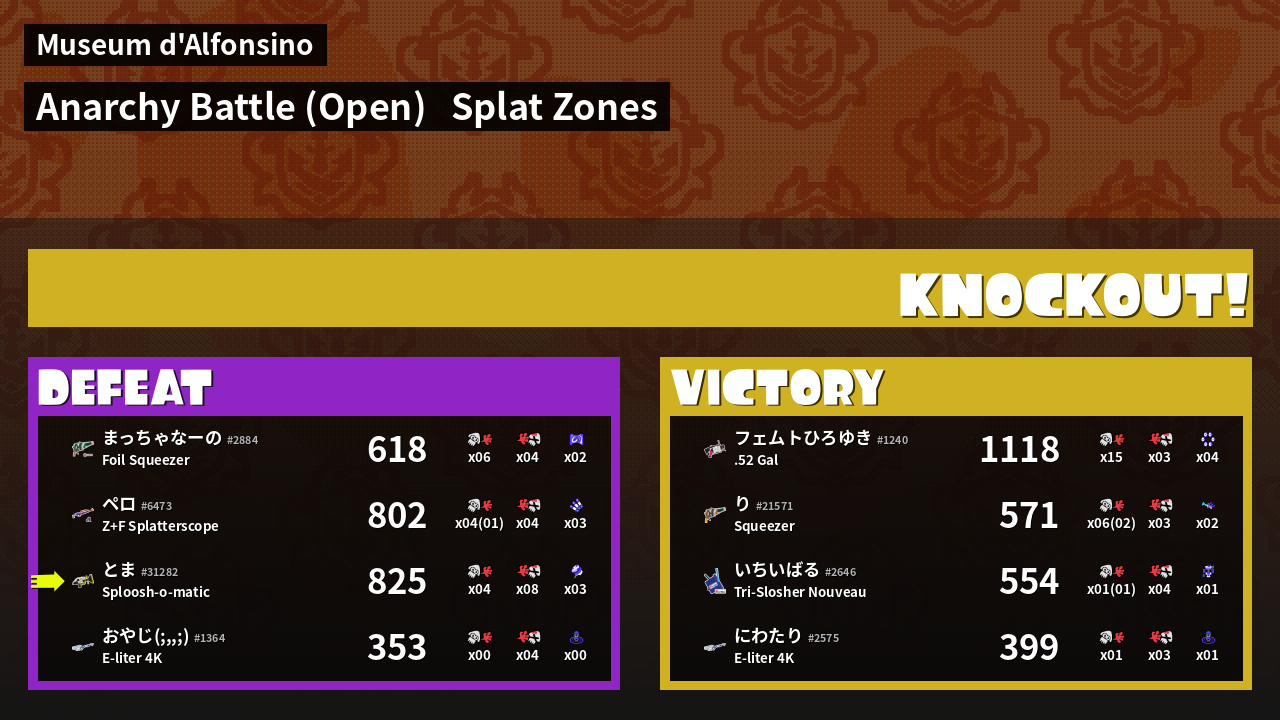 | Mode | Splat Zones - Anarchy Battle (Open) | ||
