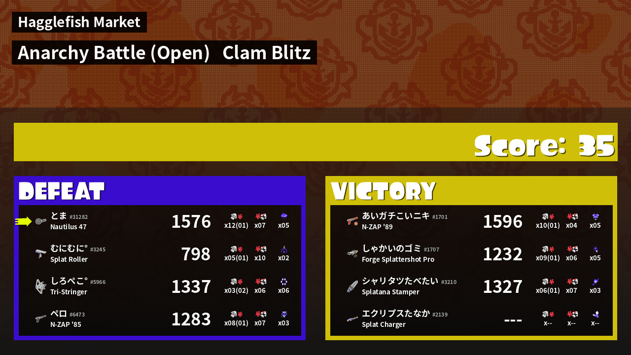 | Mode | Clam Blitz - Anarchy Battle (Open) | ||