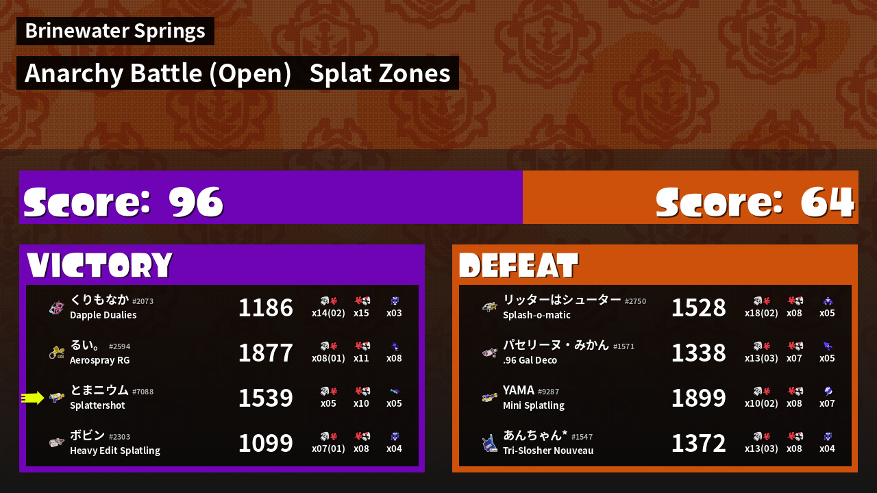 | Mode | Splat Zones - Anarchy Battle (Open) | ||