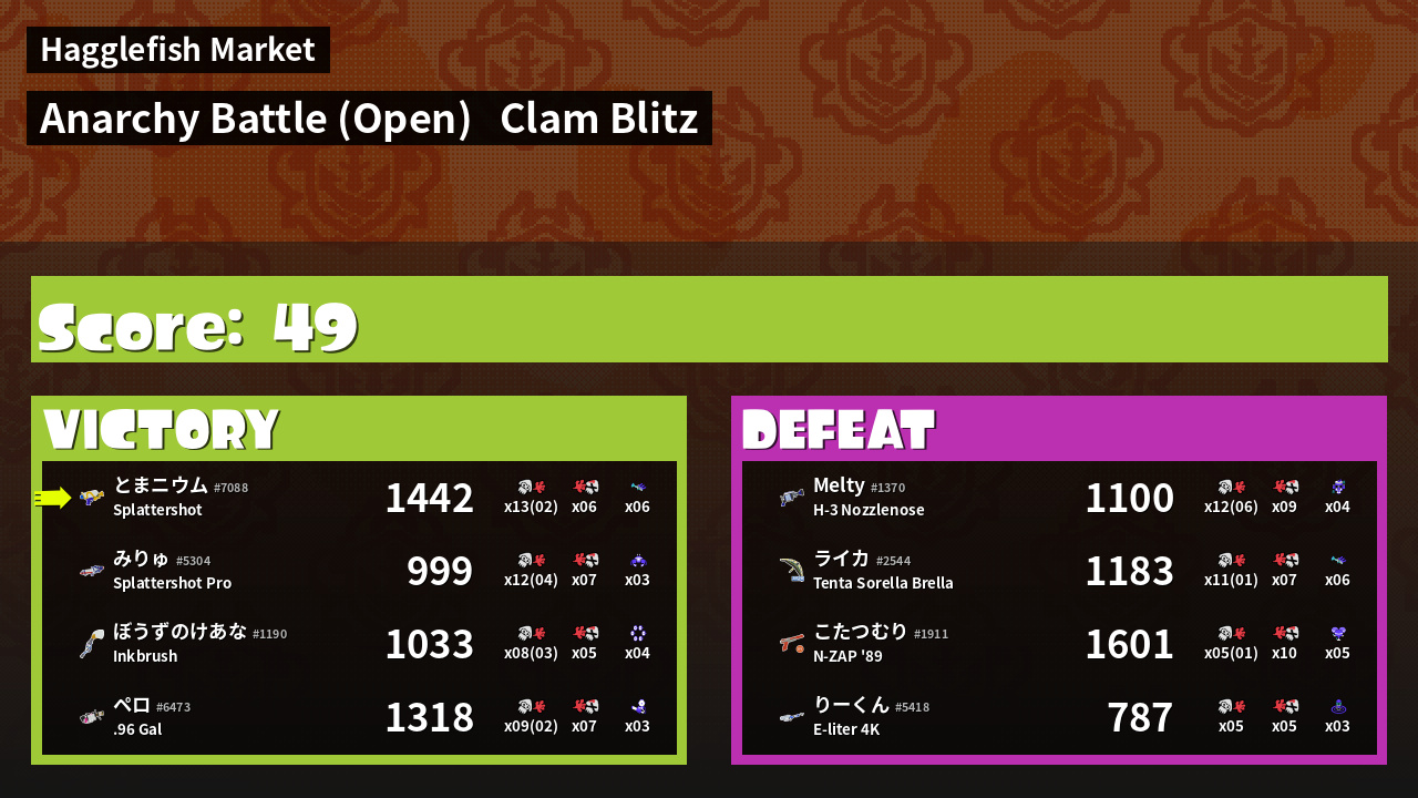 | Mode | Clam Blitz - Anarchy Battle (Open) | ||