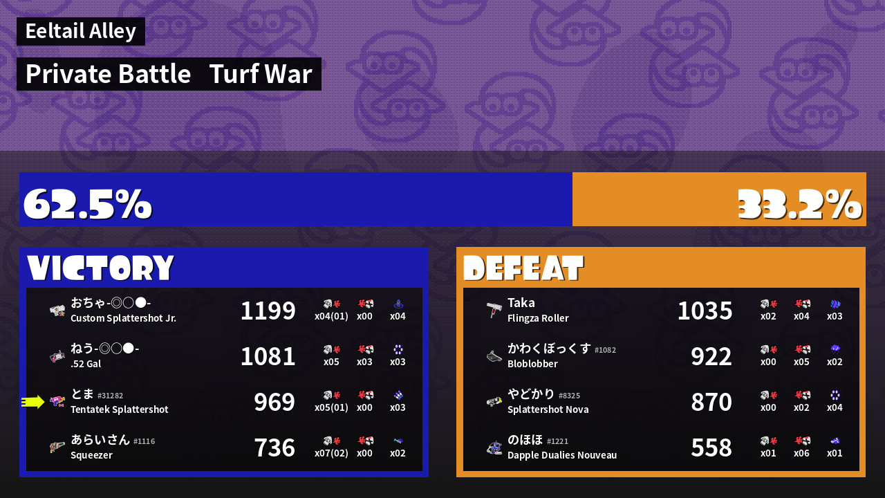 | Medals | #1 Home-Base Inker #1 Ink Consumer #2 Overall Splatter | ||