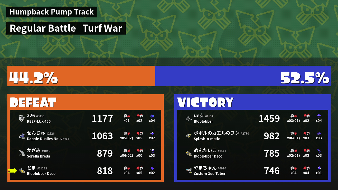 | Medals | #1 Popular Target #1 Enemy-Base Inker #1 Enemy Splatter | ||