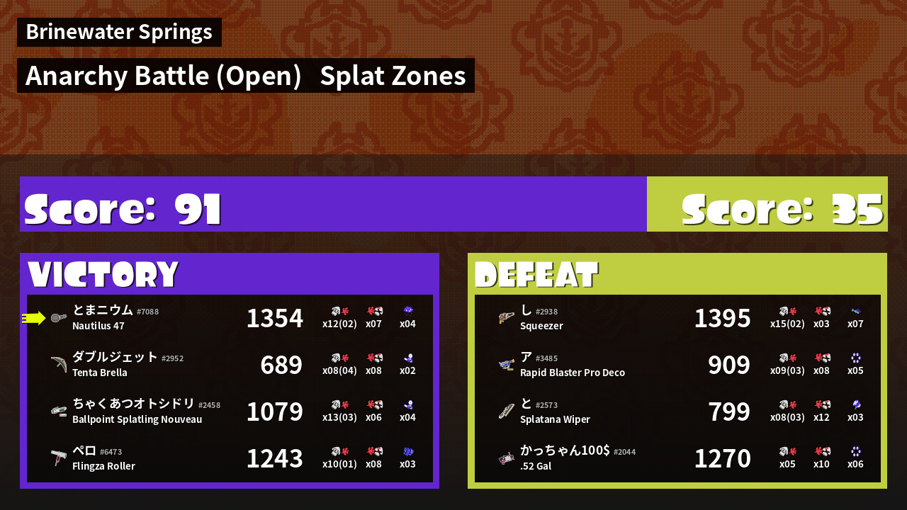 | Mode | Splat Zones - Anarchy Battle (Open) | ||