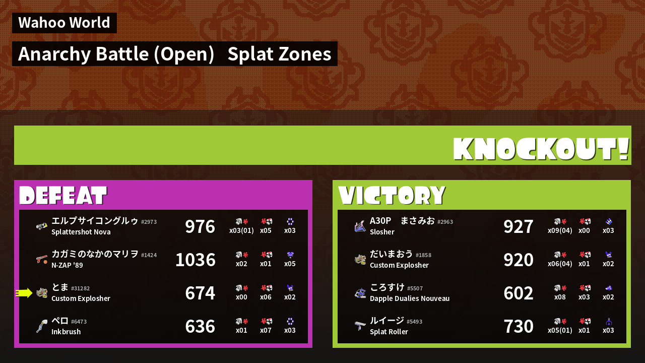 | Mode | Splat Zones - Anarchy Battle (Open) | ||