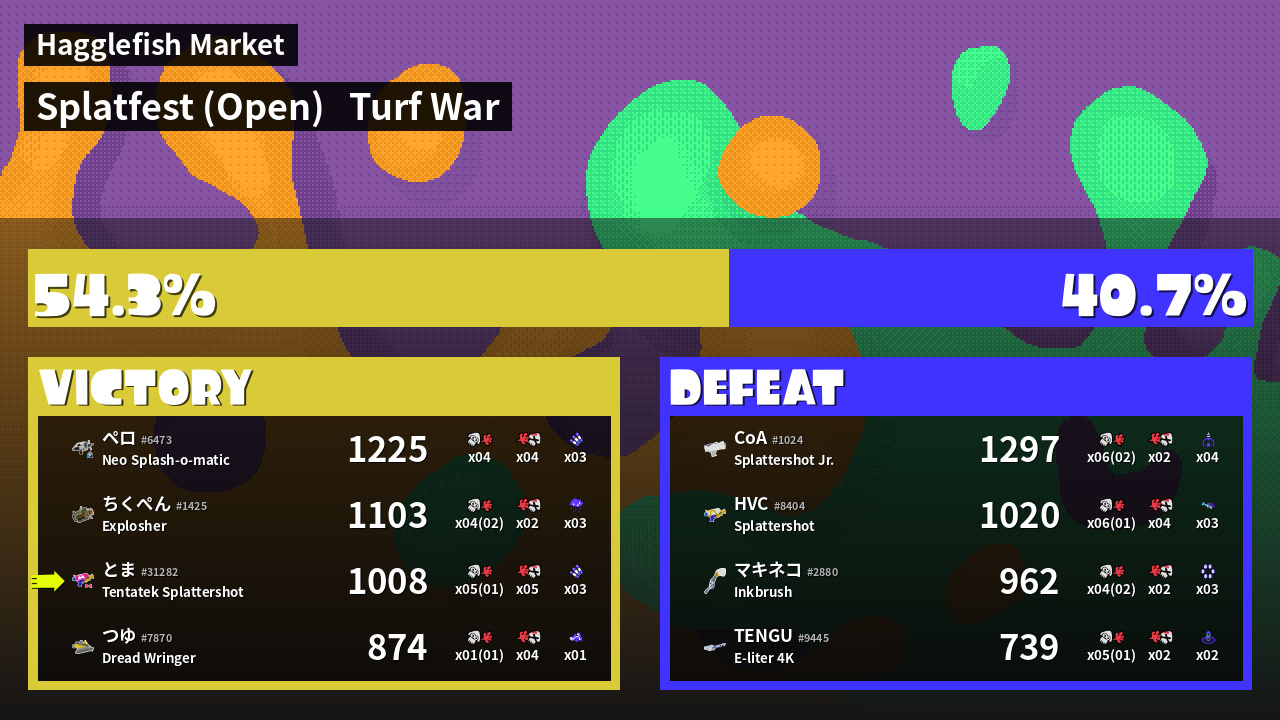 | Medals | #1 Overall Splatter #1 Popular Target #1 Enemy Splatter | ||