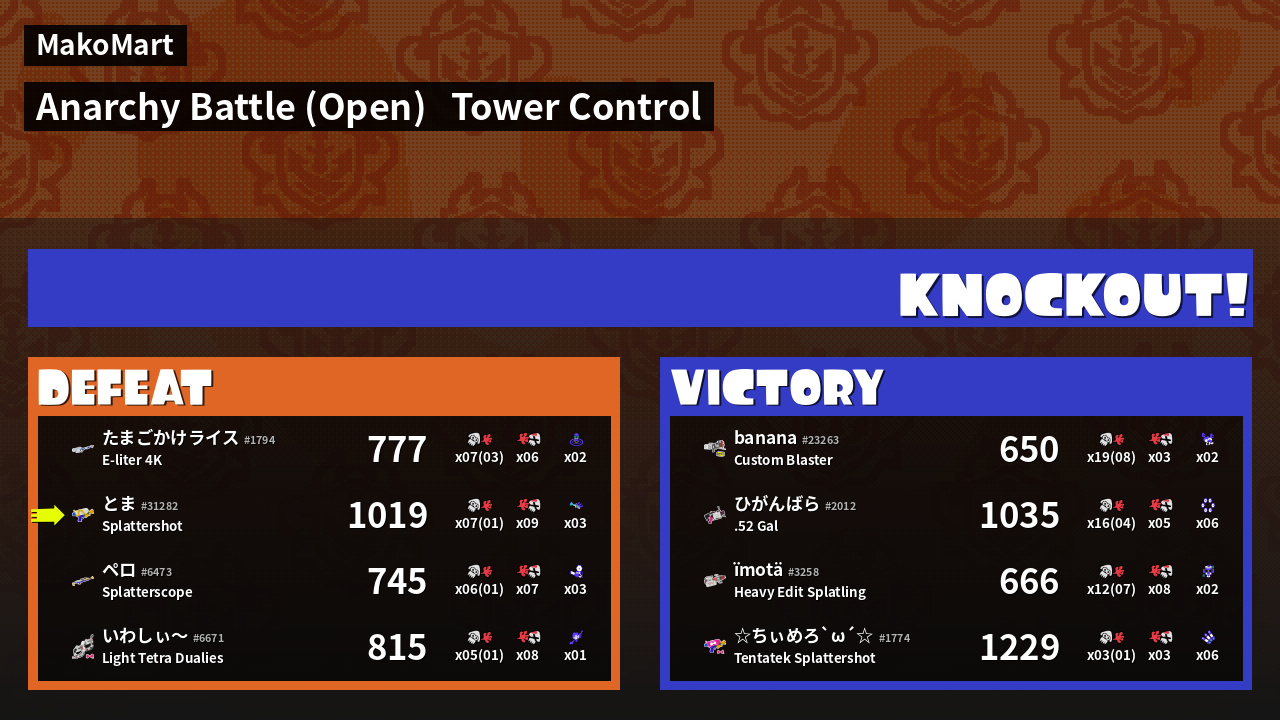 | Mode | Tower Control - Anarchy Battle (Open) | ||