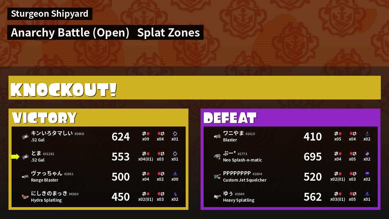 | Mode | Splat Zones - Anarchy Battle (Open) | ||