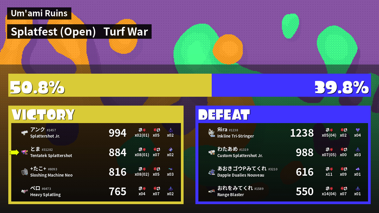 | Medals | #1 Overall Splatter #1 Home-Base Inker #1 Enemy Splatter | ||