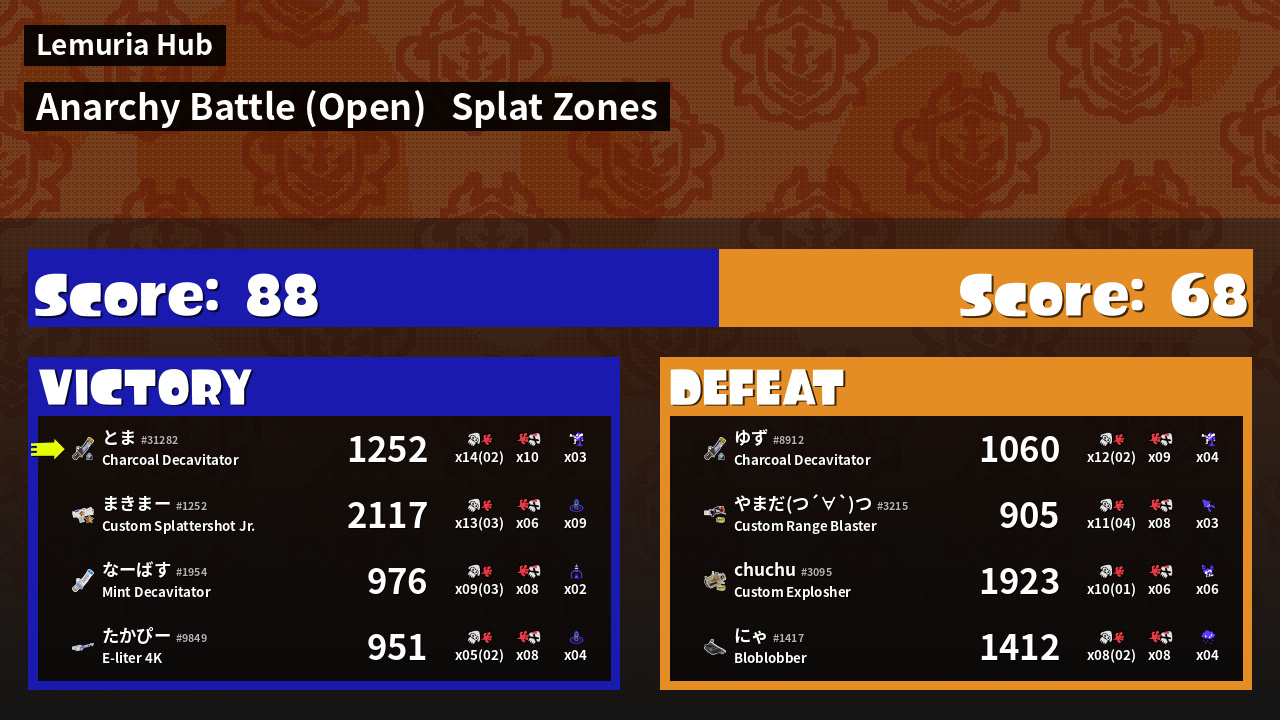 | Mode | Splat Zones - Anarchy Battle (Open) | ||