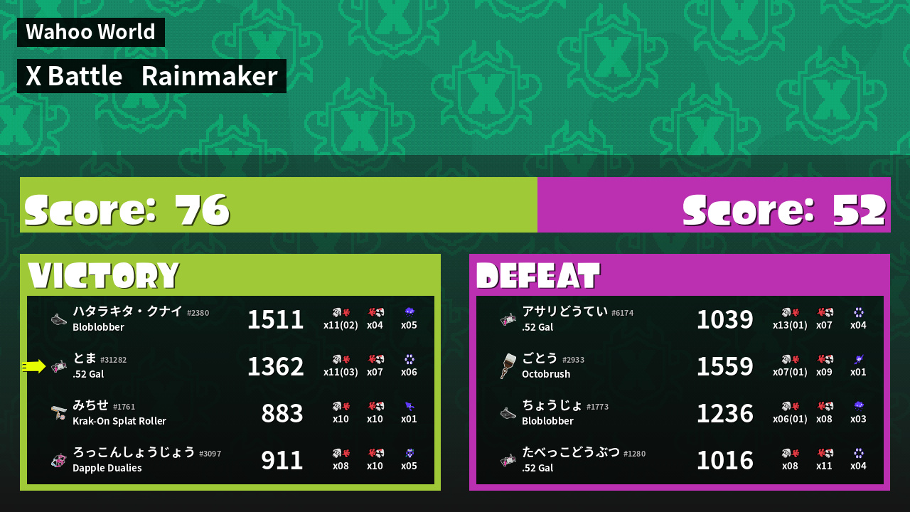 | Weapon | .52 Gal ( Splash Wall / Killer Wail 5.1) | ||