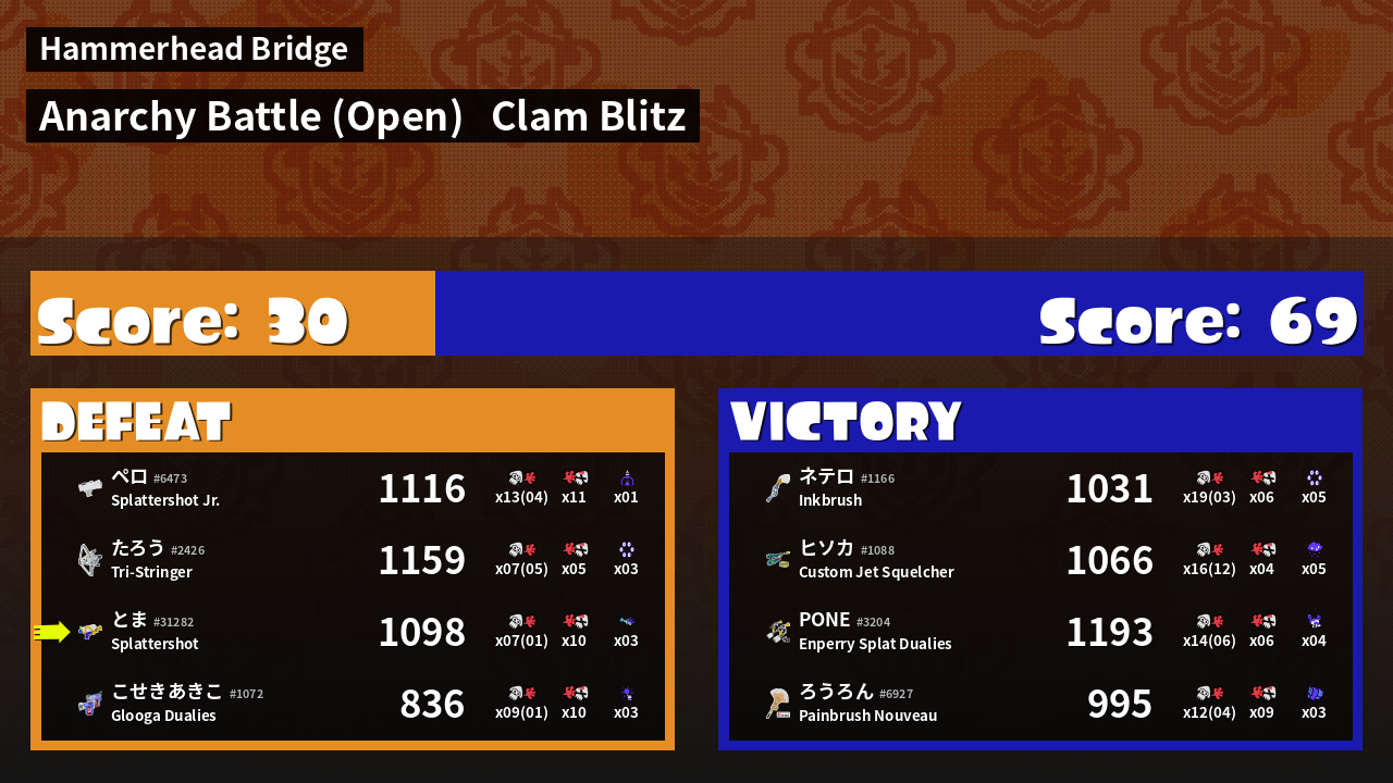 | Mode |  Clam Blitz -  Anarchy Battle (Open) | ||
