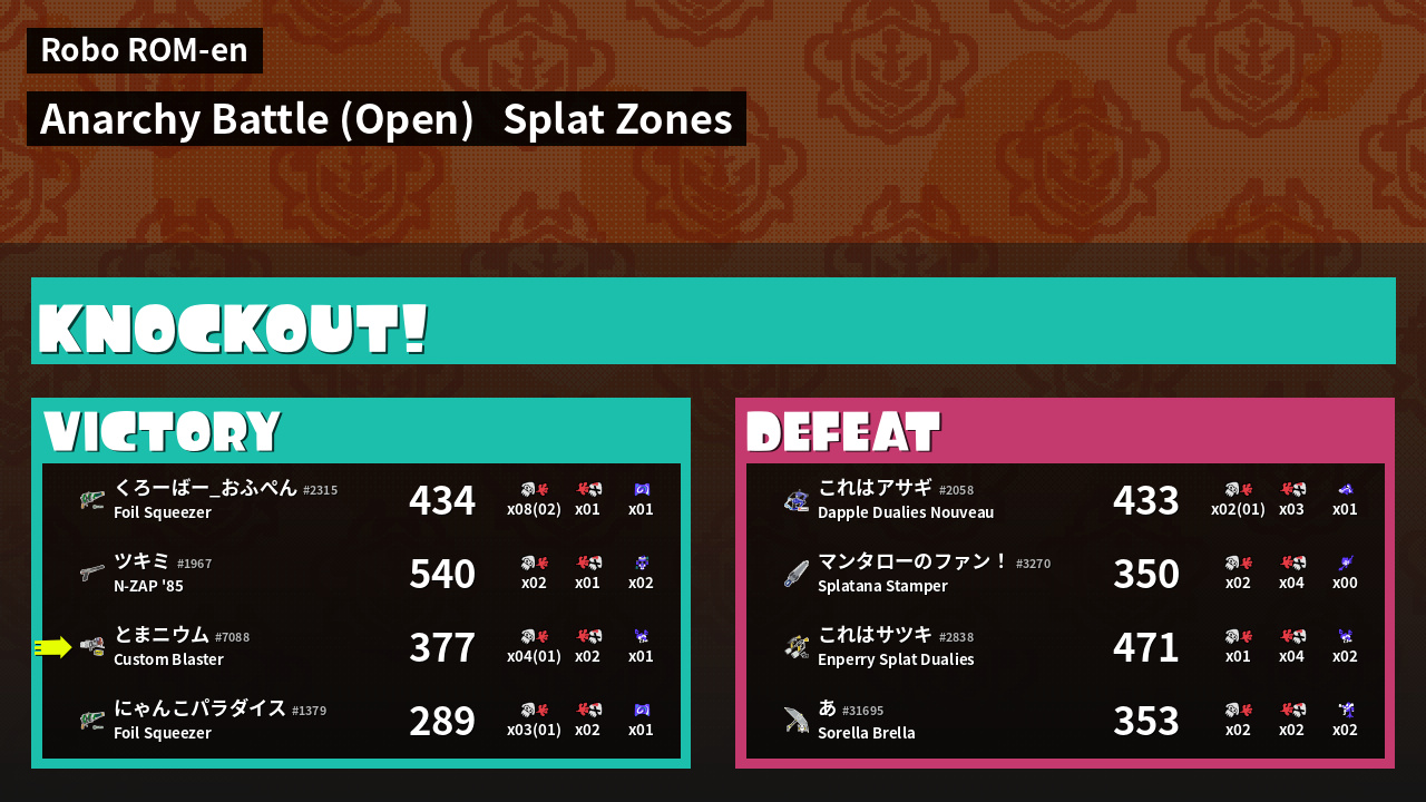 | Mode | Splat Zones - Anarchy Battle (Open) | ||