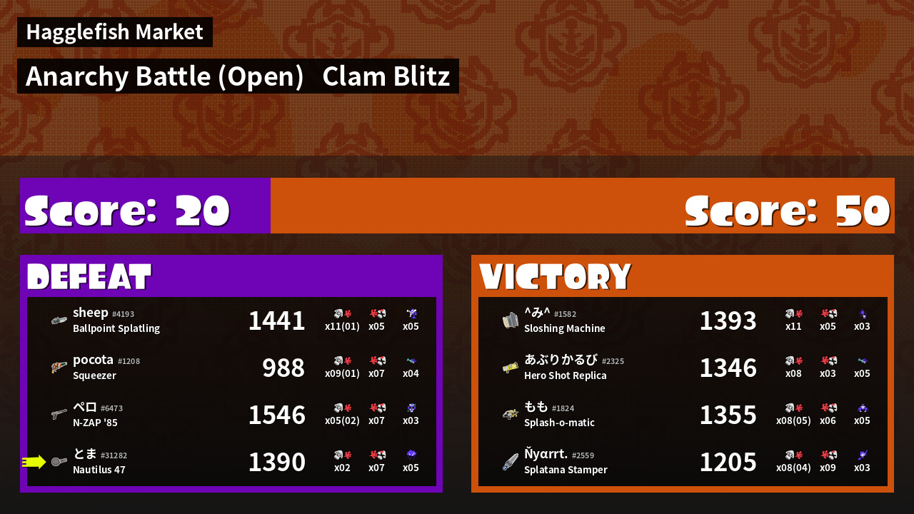 | Mode | Clam Blitz - Anarchy Battle (Open) | ||