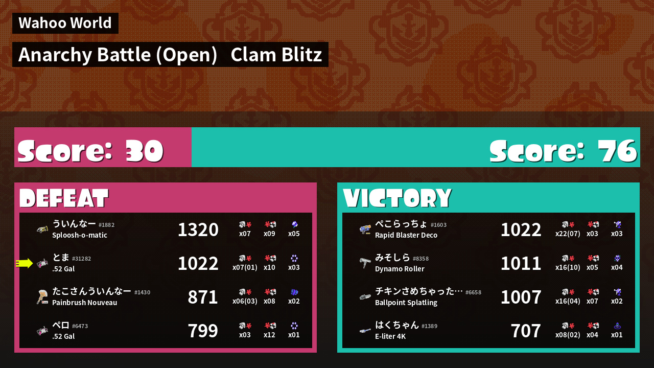 | Mode | Clam Blitz - Anarchy Battle (Open) | ||