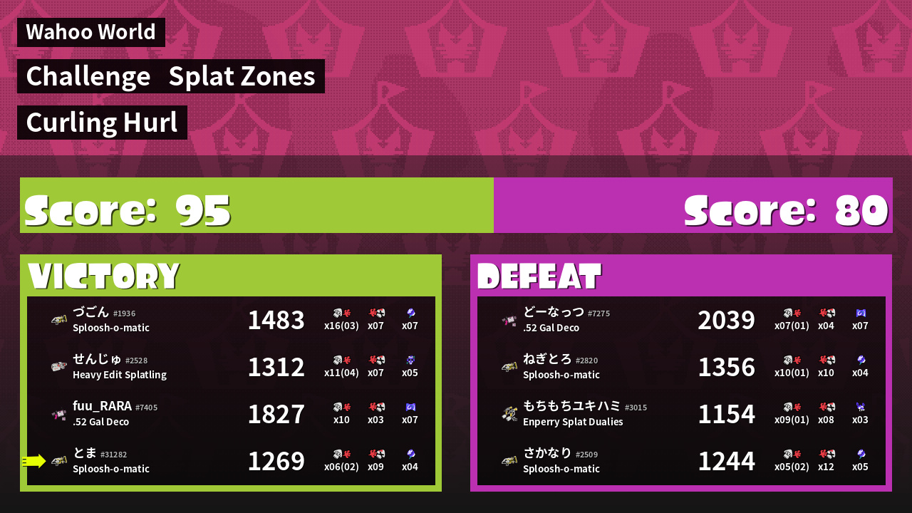 | Medals | #1 Ground Traveler #2 Splat Zone Guard | ||